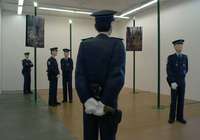 Instalaci�in t�lo, 1993, de Xavier Veilhan (Lyon, 1963), quien recurre a figuras de polic� que, sin rasgos particulares en el rostro, simbolizan la anulaci�el individualismo. La obra forma parte de la muestra de video, dibujo y pintura que se inaugurar�n el recinto de Reforma y Gandhi FOTO Cortes�Museo de Arte Moderno