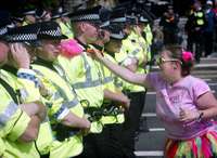 En Gleneagles, Escocia, miembros de grupos anticapitalistas se manifestaron el viernes, durante la clausura de la cumbre del G-8. La polic�detuvo a 358 activistas en el curso de la semana FOTO Ap