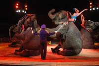 La doma pasa lista como parte medular de la función. Carlos Guillaumín, un joven de apenas 22 años, trabaja con seis espléndidos tigres de bengala y deja ver su relación con la Princesa, que se rehúsa a abandonar el escenario, a no ser de que el hombre del fuete le plante un beso y un abrazo. En tanto, Oscar Alegría pasea a las cuatro elefantas del Atayde, las veteranas del elenco, que giran, bailan y hacen pirámides.