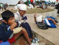 Paraguayos descansan durante su marcha de Puerto Casado a Asunci�unos 150 kil�ros) en demanda de la expropiaci�e tierras de la secta Moon para repartirlas a agricultores FOTO Reuters