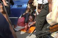 El cuerpo de un miembro del Consejo de Di�go Nacional Musulm�Sunita es sacado de un veh�lo luego de un atentado en el barrio Karradah, ayer en Bagdad FOTO Ap
