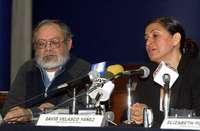 El director del Centro de Derechos Humanos Miguel Agust�Pro Ju�z, David Velasco, y la madre de Nadia Zepeda, Carmen Molina, durante la conferencia de prensa para presentar el caso de la joven detenida FOTO Guillermo Sologuren