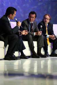 Carlos Hermosillo, Jorge Valdano y Decio de Mar� durante la mesa redonda FOTO Jos�ntonio L�