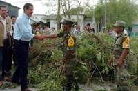 Pero nada más. Eso, a pesar del entusiasmo del presidente municipal de Apodaca, José Antonio Elizondo Garza, quien creía que el helicóptero presidencial sobrevolaría las zonas afectadas de su municipio. Y se equivocó. Las aeronaves aterrizaron en el aeropuerto -ubicado precisamente en Apodaca- donde Fox Quesada antes de las seis de la tarde tomó el avión que lo llevaría, junto con los elementos de su Estado Mayor, a su rancho de descanso en Guanajuato.