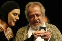 Claudio Obreg�el rey Lear), acompa� de Julieta Egurrola, muestra la presea que le otorgaron por su fruct�ra carrera actoral, la noche del jueves en el teatro Julio Castillo FOTO Jos�ntonio L�