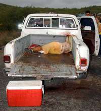 La camioneta en la que viajaban cuatro mujeres y un menor fue baleada por desconocidos en Los Tablones. Hasta el momento se desconocen los motivos del homicidio m�le, aunque los primeros indicios se�n que se trat� una venganza FOTO El Debate de Sinaloa