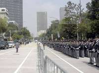 Aspecto de la avenida Ju�z remozada, donde uniformados de la SSP hacen valla desde Paseo de la Reforma hasta el Eje Central L�ro C�enas, durante la ceremonia de inauguraci�OTO Notimex