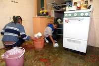 Vecinos de la colonia Condesa sacan el agua de su casa, luego de la fuerte lluvia que azot�er la ciudad FOTO Marco Pel�