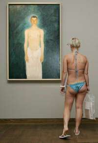 Visitantes desnudas o semidesnudas que consiguieron la entrada gratuita para admirar la exposici�el Museo Leopold, en la capital de Austria FOTO Ap