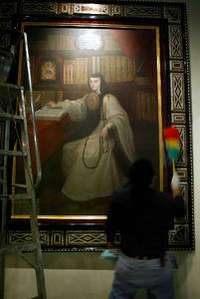Limpieza del cuadro original de Sor Juana In�de la Cruz, del pintor Miguel Cabrera, que se exhibe en el Castillo de Chapultepec FOTO Mar�Mel�rez Parada