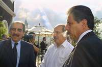 Los precandidatos a la jefatura de Gobierno del DF Pablo G�, Armando Quintero y Jes�tega conversan antes de su participaci�n la Asamblea Nacional de la Asociaci�e Autoridades Locales, realizada ayer en un hotel de la ciudad FOTO Roberto Garc�Ort�