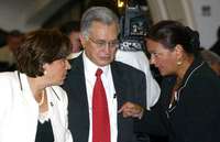 Los senadores Noem�uzm� Manuel Bartlett D� y Dulce Mar�Sauri Riancho en el recinto de Xicot�atl, donde ayer rindi�otesta Enrique Jackson como presidente de la mesa directiva FOTO Guillermo Sologuren