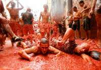 Cerca de 40 mil personas se congregaron en la peque�iudad espa� de Bu�para protagonizar la mayor guerra de tomates del mundo, conocida como la Tomatina. Protegidos con m�aras y gafas, los llamados guerreros se bombardearon con 130 toneladas del producto FOTO Reuters