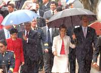 Llegada del gobernador de Jalisco, Francisco Ram�z Acu�izquierda), y el presidente Fox, con sus respectivas esposas, al acto tapat�FOTO Arturo Campos Cedillo