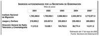 De hecho, explica el oficial mayor de la SG, Francisco Suárez Warden, la principal fuente de ingresos de esta secretaría es el Instituto Nacional de Migración, el cual obtuvo al inicio del sexenio mil 765 millones de pesos y el año pasado alcanzó 2 mil 403 millones. En el primer semestre de este año ya superó esa cantidad al ubicarse en 2 mil 712 millones. Además, la SG obtiene recursos por ventas e inserciones en el Diario Oficial de la Federación.