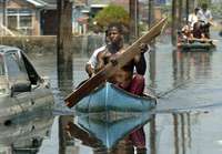 Voluntarios ayudan a rescatar a personas que quedaron atrapadas en sus hogares en Nueva Orle�, a una semana del paso de Katrina FOTO Ap