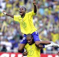 Robinho (arriba) y Adriano festejan el categ�o triunfo de la verdeamarelha FOTO Reuters