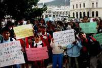 Hoy, en protesta, los niños que habitan colonias como La Condesa, Europa, Aves del Paraíso o La Marquesa, donde la mayoría de las viviendas son de cartón y madera, se apostaron frente al acceso principal del palacio de gobierno, en la Plaza Juárez, donde con pancartas mostraron su enojo y exhibieron la "insensibilidad" del gobierno que les niega el permiso para operar escuelas de nivel prescolar, primaria y secundaria, lo que afecta a 391 alumnos.