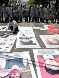 Un hombre pone en La Paz fotos de bolivianos muertos durante protestas en octubre de 2003 FOTO Reuters