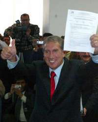 Luego, protegido por una docena de guardaespaldas, cruzó la explanada y se dirigió al fondo del estacionamiento, donde la víspera se montó un templete. Desde ahí fustigó, sin nombrarlo, a su contrincante, Roberto Madrazo.