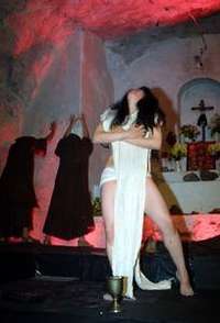 Las tentaciones de Mar�Egipciaca, espect�lo de Miguel Sabido, presenta funciones dobles durante tres d� en el contexto del Festival Internacional Cervantino. Ayer se efectuaron las primeras en la mina El Nopal, y las restantes ser�hoy y ma� domingo a las 18 y 20 horas FOTO Roberto Garc�Ort�