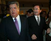 Roberto Albores Guill�y Mariano Palacios Alcocer, despu�de la reuni�ue el dirigente pri�a sostuvo con ex gobernadores y ex presidentes nacionales del PRI FOTO Carlos Cisneros