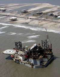 El hurac�Katrina provoc�e esta plataforma petrolera rompiera su amarre en el Golfo de M�co y encallara en las playas de la isla Dauphin, en Alabama, el pasado 30 de agosto FOTO Ap