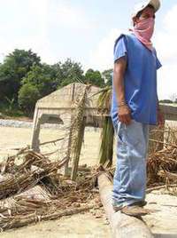 Zapatista frente a su casa destruida en Huixtla FOTO Colectivo de Solidaridad Zapatista