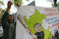 Peruanos residentes en Chile exigen castigo para Fujimori frente a la Escuela de Gendarmer� donde el ex mandatario est�etenido en Santiago FOTO Reuters