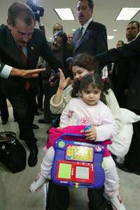 El presidente Vicente Fox durante el arranque del programa Paisano en el aeropuerto del DF FOTO Cristina Rodr�ez