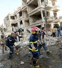 Bomberos y socorristas iraqu� rescatan a v�imas de dos atentados en el sur de Bagdad FOTO Ap