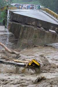 Gamma inund�n Pedro Sula, Honduras, el fin de semana. A la derecha, puente destruido sobre el r�Guaymon, en el mismo pa�FOTO Ap y Reuters