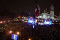 A las seis de la tarde, ya miles se habían parado frente al escenario y soportaban con estoicismo una lluvia pertinaz. Aparecieron los vendedores de capas de hule, salvadoras. Para calentar el cuerpo, unos esquites, un atole, un café, algo caliente, de manos de cientos de vendedores. Media hora más, una hora, hora y media... el frío. La lluvia paró. Otros miles llegaron y ejercieron presión desde la parte de atrás.