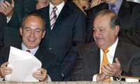 Felipe Calder� Carlos Slim, durante la firma del pacto FOTO Mar�Mel�rez Parada