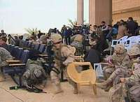Un obús cayó cerca del lugar donde se realizaba la ceremonia de entrega a Irak de los palacios del ex presidente en el bastión de Hussein, en presencia del embajador de Estados Unidos, Zalmay Khalilzad, y del comandante de las fuerzas estadunidenses en Irak, George Casey.