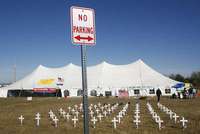 Imagen del campamento de opositores a la guerra contra Irak, ayer, en el rancho del presidente George W. Bush en Crawford, Texas, movimiento encabezado por Cindy Sheehan, madre de un soldado estadunidense abatido en el pa�ocupado FOTO Ap