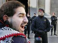 Un manifestante antisrael�rita consignas en favor de los palestinos en calles del centro de Barcelona FOTO Ap