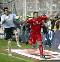 Festejo de Rengo D� tras anotar el 2-0. Atr� Oswaldo buscaba pleito FOTO Reuters