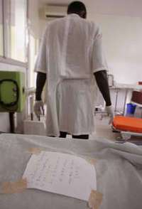 Un enfermero senegal�se prepara para trasladar el cad�r de una mujer reci�fallecida de sida, este martes en Dakar FOTO Ap