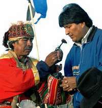 Evo Morales, candidato del MAS a la presidencia de Bolivia, en una ceremonia con un m�co aymara en Lloqo Lloqo, cerca de La Paz, ayer FOTO Reuters