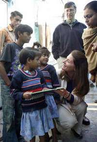 Bill Gates, de pie a la izquierda, y su esposa, Melinda, en una visita a India donde realizaron labores filantrop�FOTO Ap
