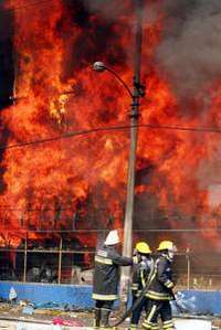 Bomberos tratan de controlar el incendio que se produjo en una f�ica de muebles, en Nezahualc�l FOTO Alfredo Dom�uez