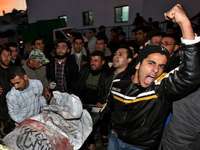 Palestinos rodean en un hospital de la ciudad de Gaza el cuerpo de un activista muerto durante un ataque selectivo de Israel