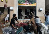Paquistaníes destrozan el restaurante de comida rápida McDonald's, durante protestas en Lahore contra las caricaturas de Mahoma