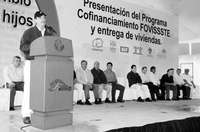 El presidente Vicente Fox durante la presentación el jueves de un programa de vivienda del Fovisste, en Cancún, Quintana Roo