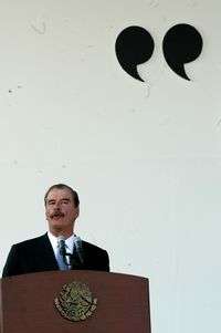 El presidente Vicente Fox en la ceremonia conmemorativa al Día del Ejército, en el Campo Militar número uno