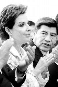 El gobernador de Puebla, Mario Marín, en tiempos de calma, cuando, en compañía de Marta Sahagún, escuchó el informe de su esposa, Margarita García de Marín, directora del patronato del DIF estatal, el 2 de febrero pasado