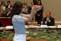 A la derecha, el consejero presidente del Instituto Federal Electoral, Luis Carlos Ugalde, durante la sesión de ayer del Consejo General