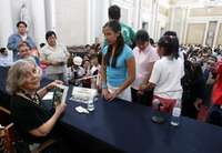 El movimiento en el Palacio de Minería fue incensante durante el penúltimo día de la feria del libro. A la derecha, Elena Poniatowska firma libros de su autoría