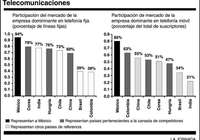 ''La empresa dominante en telefonía fija en México (Telmex) tiene 94 por ciento del mercado'', la mayor tasa de concentración en el mundo, según una gráfica mostrada por Ortiz a los asistentes al foro. Mientras tanto, en telefonía móvil, la empresa dominante (Telcel, también propiedad de Slim Helú) tiene 80 por ciento de participación de mercado, también la más alta del planeta, de acuerdo con la gráfica.